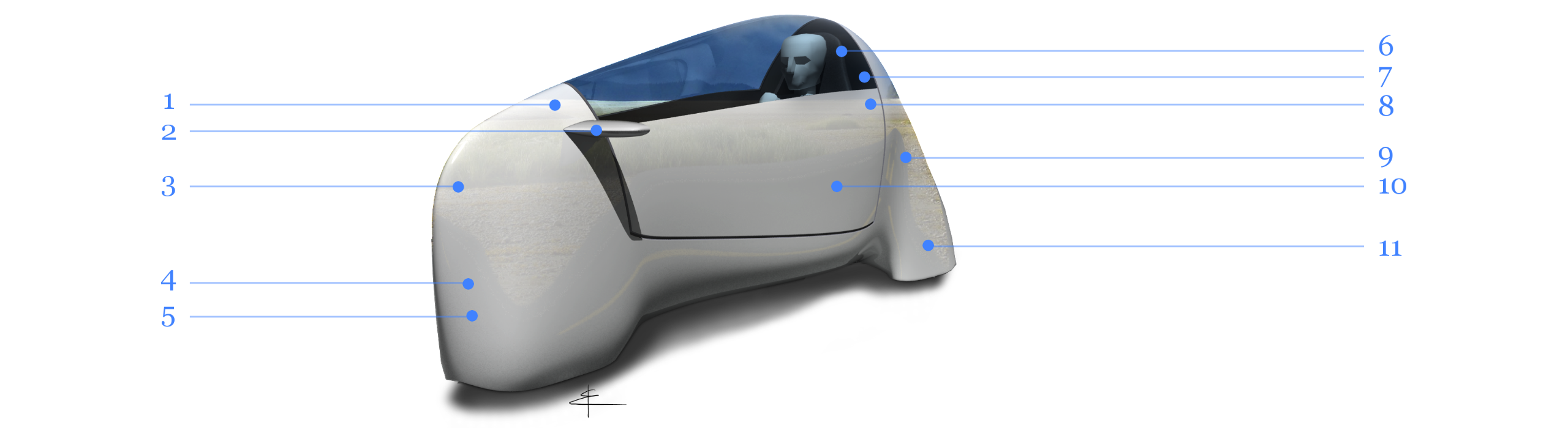 This lightweight single person monocoque would have the acceleration of a electric motor bike. Spectacular performances compared to the bulky machine you drag around today. It will cost you of course. Let’s hope that a more reasonable tax system will emerge soon. One in which you pay for the miles you drive, not for the vehicle you own. Because when that comes along you might be tempted to calculate how many cheap miles you would have to drive in your ePod to justify the price. How much you would save on maintenance and parking fees for your large family vehicle if you would not use it every day. And of course how much more fun it would be to cruise around in a personal cocoon with sports bike performance.